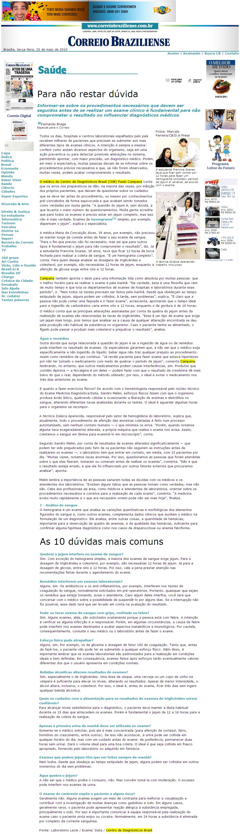 JORNAL CORREIO BRAZILIENSE (IMPRESSO E PORTAL) - Para não restar dúvida