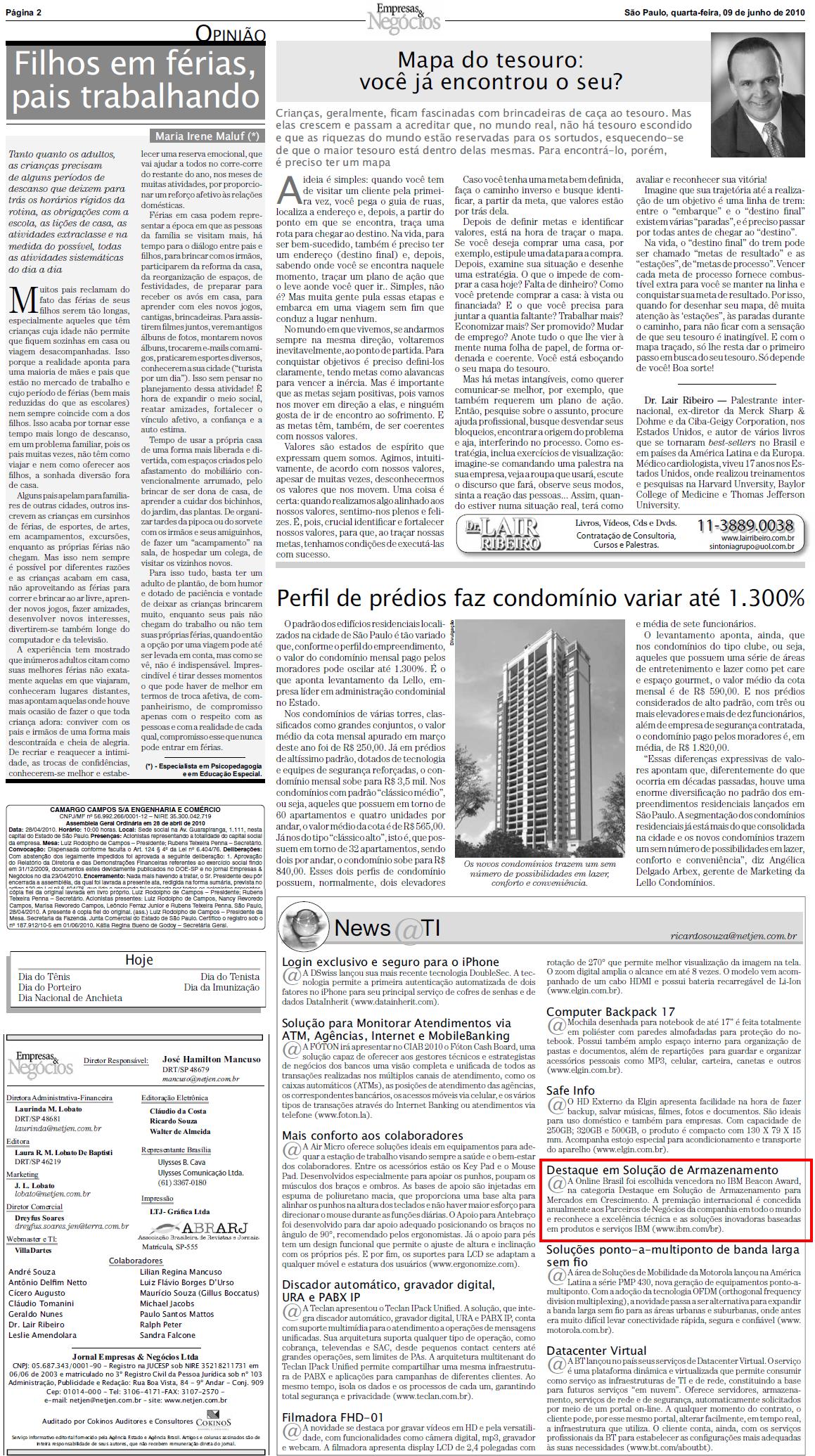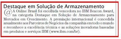 JORNAL EMPRESAS & NEGÓCIOS (IMPRESSO) - Destaque em solução de armazenamento