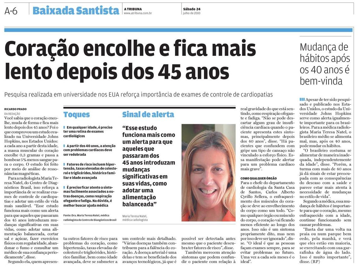 Clipping JORNAL A TRIBUNA DE SANTOS (IMPRESSO) - Coração encolhe e fica mais lento depois dos 45 anos 26/07/2010