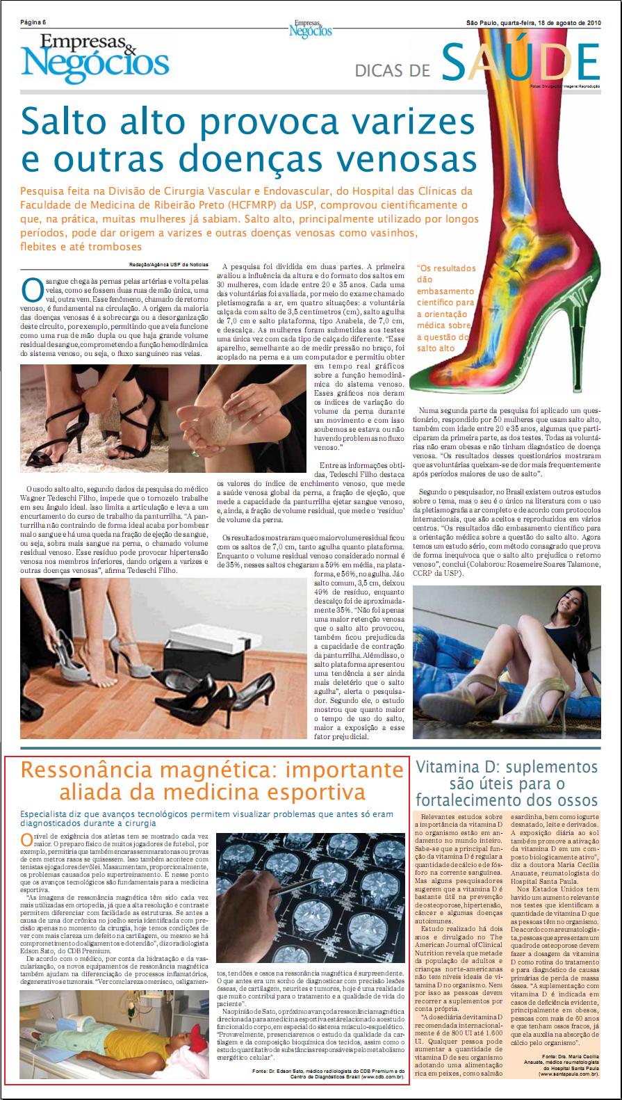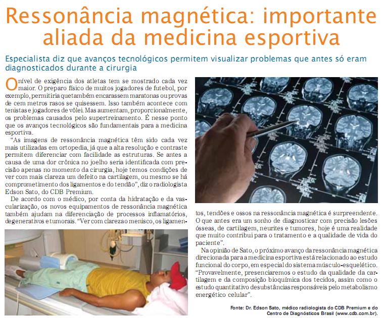 Clipping JORNAL EMPRESAS & NEGÓCIOS (IMPRESSO) - Ressonância magnética: importante aliada da medicina esportiva 18/08/2010