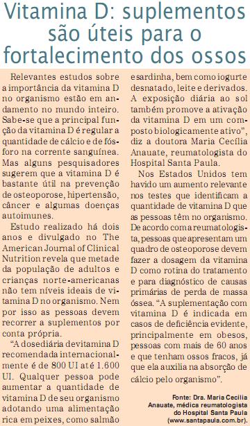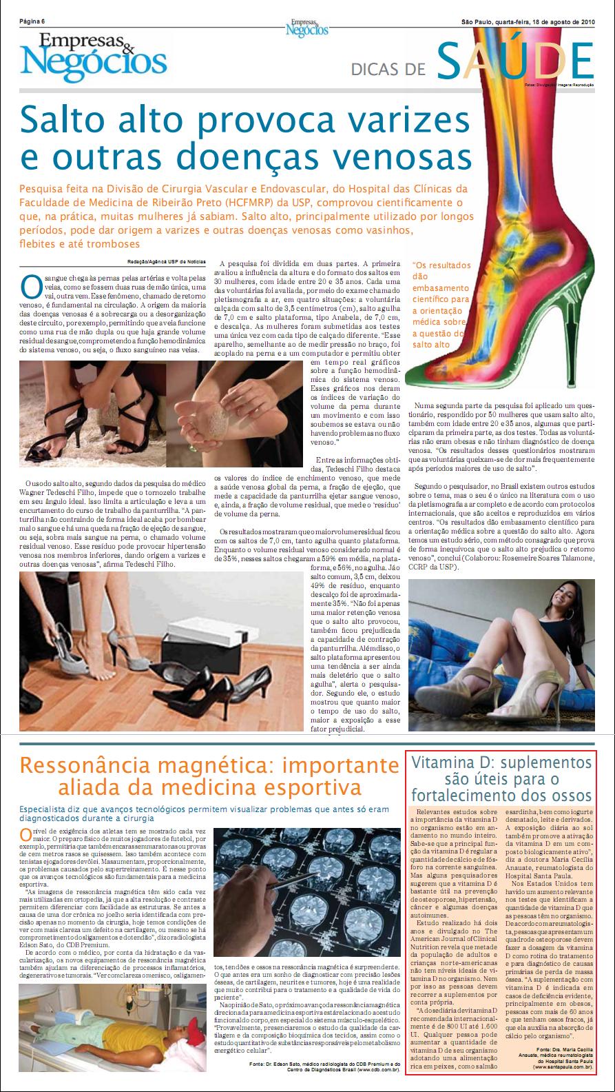 Clipping JORNAL EMPRESAS & NEGÓCIOS (IMPRESSO) - Vitamina D: suplementos são úteis para o fortalecimento dos ossos 18/08/2010