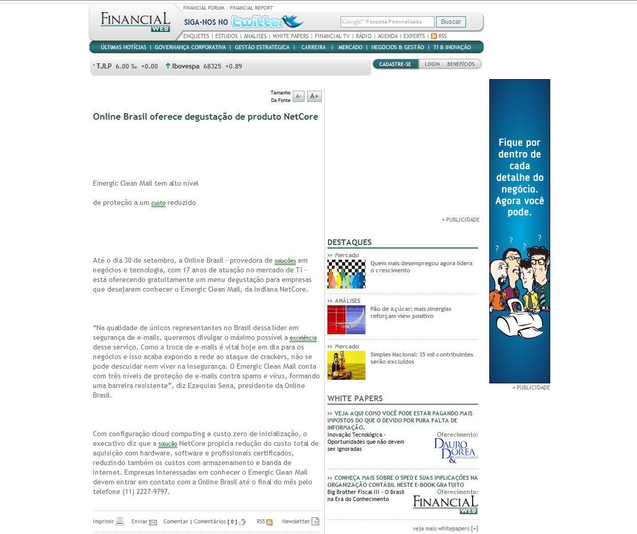 FINANCIAL WEB - Online Brasil oferece degustação de produtos NetCore