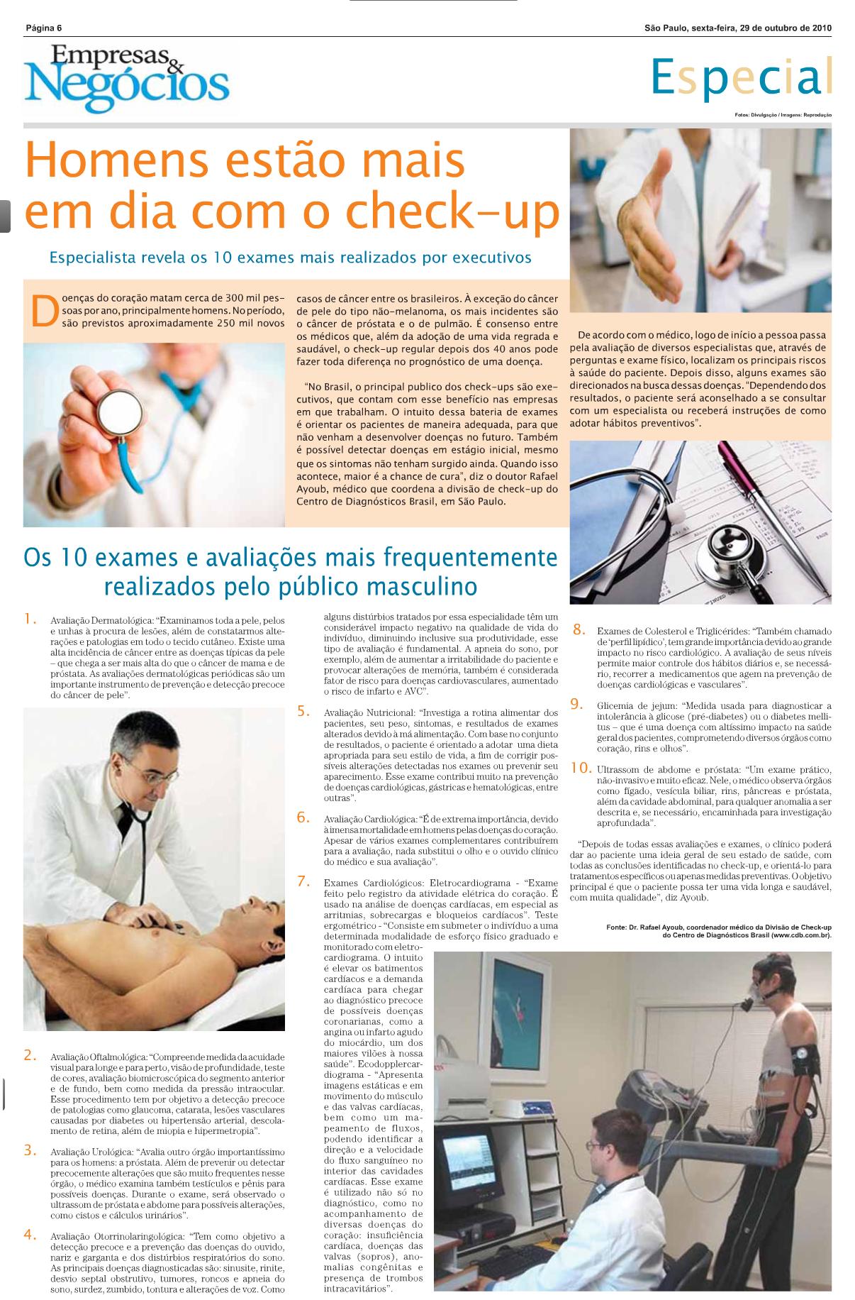 JORNAL EMPRESAS & NEGÓCIOS - Homens estão mais em dia com o check-up