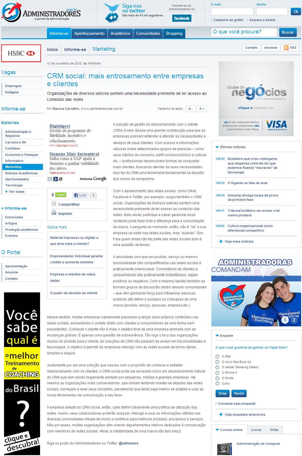 PORTAL ADMINISTRADORES - CRM social: mais entrosamento entre empresas e clientes
