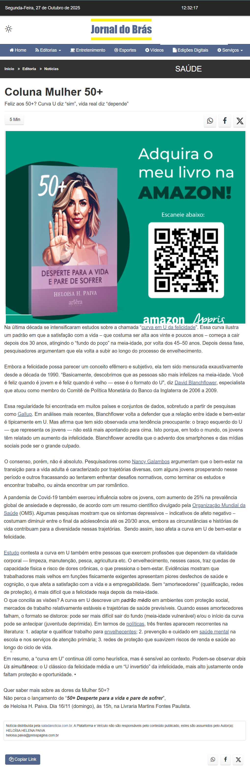 JORNAL DO BRÁS publica COLUNA MULHER 50+