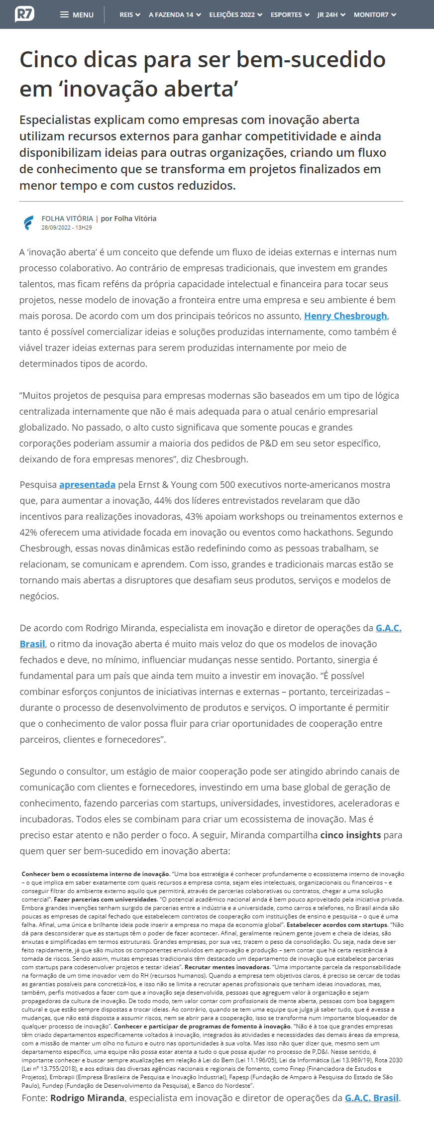 PORTAL R7 - Cinco dicas para ser bem-sucedido em "inovação aberta"