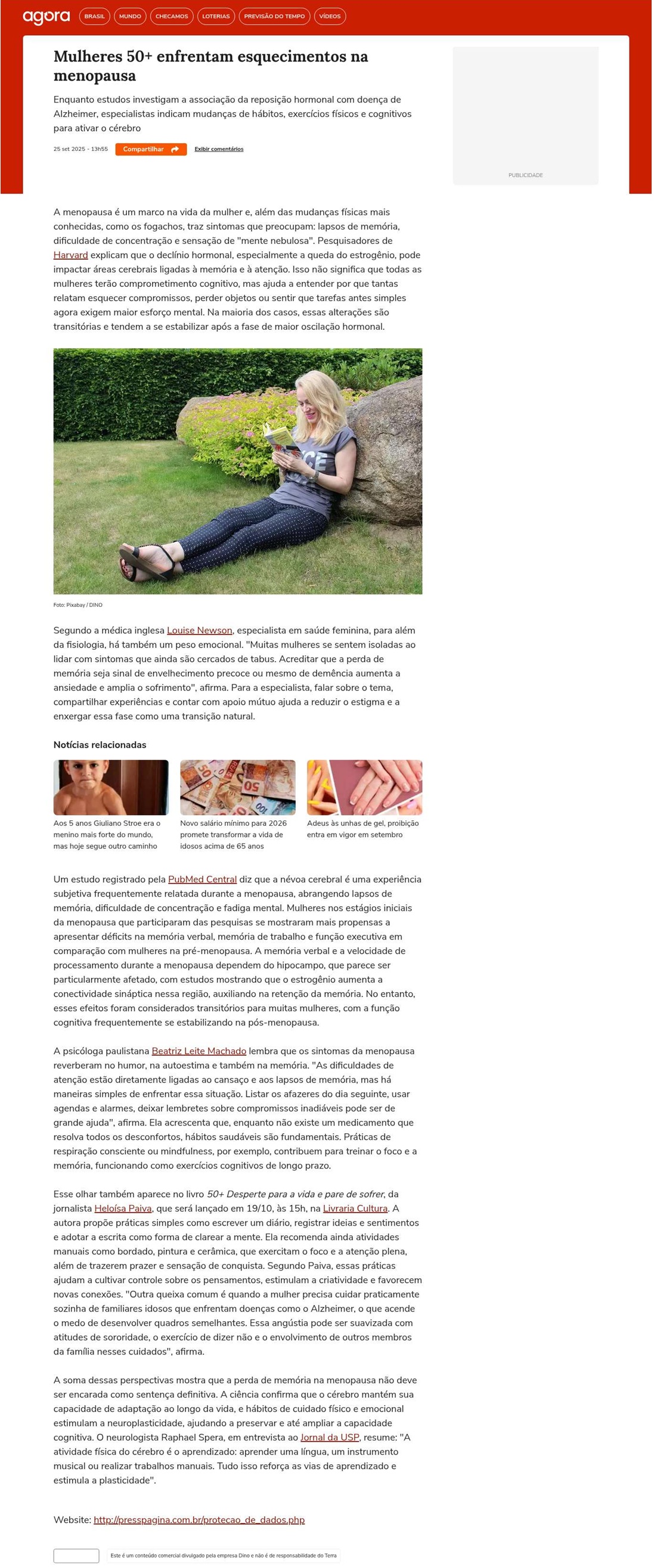 PORTAL TERRA - Mulheres 50+ enfrentam esquecimentos na menopausa