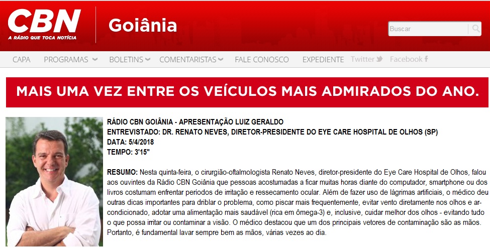 RÁDIO CBN GOIÂNIA - Dr. Renato Neves dá dicas para evitar irritação ocular