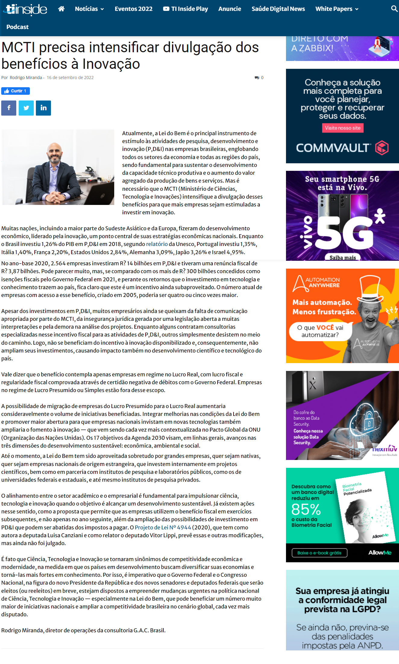 TI INSIDE - MCTI precisa intensificar divulgação dos benefícios à inovação