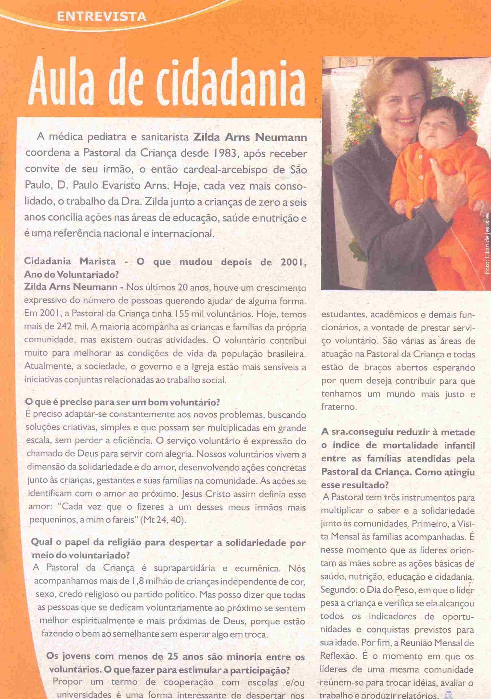 *** Dra. Zilda Arns em 2005, durante entrevista a um jornalista da nossa equipe para a elaboração do "Jornal Cidadania Marista", da Província Marista Brasil Centro-Sul.